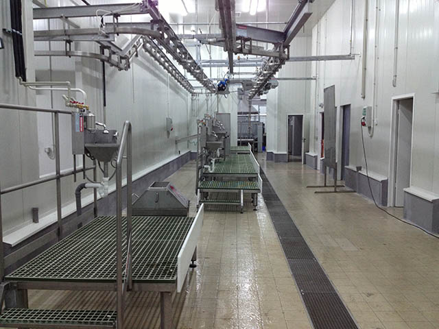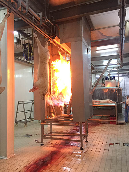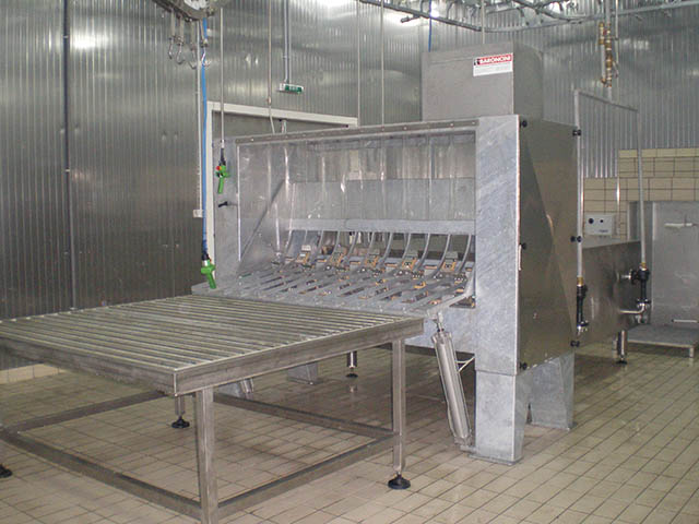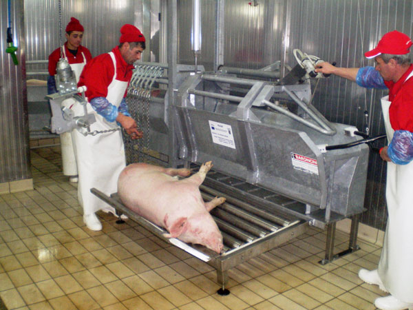 BARONCINI offers slaughtering lines for pigs, with capacities from 6 up to 400 units/hour, adapted to your requests and corresponding to the european sanitary norms, as well as to the USDA norms.Based on capacity, the plants include traditional stunning boxes or restrainer, automatic horizontal bleeding on belt-conveyor or vertical bleeding, scalding tanks with automatic advancing system, dehairing machines, horizontal or vertical singeing furnaces, brushing machines, saws, automatic lines (conveyors) or gravity slaughtering lines, inspection lines for organs, conveyors for pre-cooling and rails for cold stores.