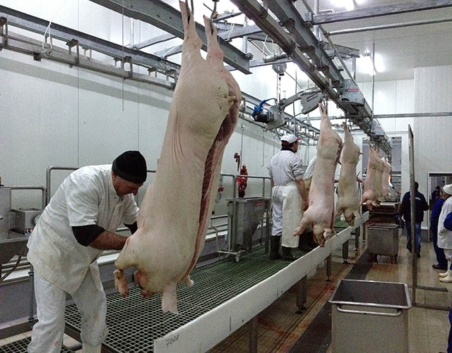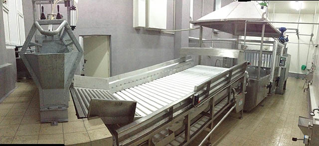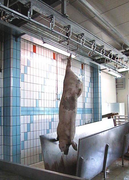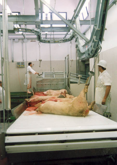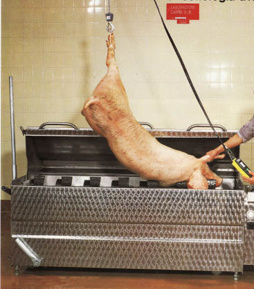 BARONCINI offers slaughtering lines for pigs, with capacities from 6 up to 400 units/hour, adapted to your requests and corresponding to the european sanitary norms, as well as to the USDA norms.Based on capacity, the plants include traditional stunning boxes or restrainer, automatic horizontal bleeding on belt-conveyor or vertical bleeding, scalding tanks with automatic advancing system, dehairing machines, horizontal or vertical singeing furnaces, brushing machines, saws, automatic lines (conveyors) or gravity slaughtering lines, inspection lines for organs, conveyors for pre-cooling and rails for cold stores.